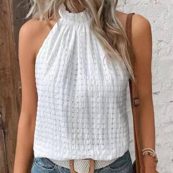 Women's Fashion Sleeveless Bubble Plaid Round Neck Vest