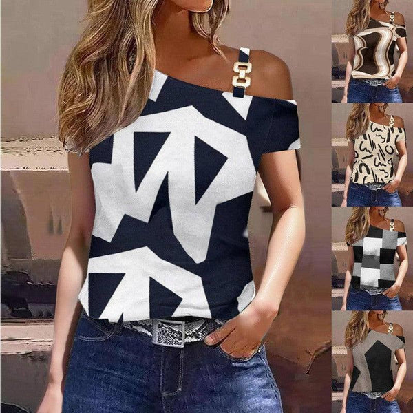 Women's Summer Simplicity Short-sleeved Metal Buckle Printed