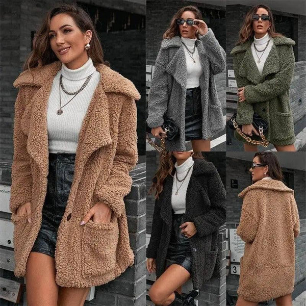 Yhden rintainen kupla Fleece takki löysä läppä Lamb Fleece